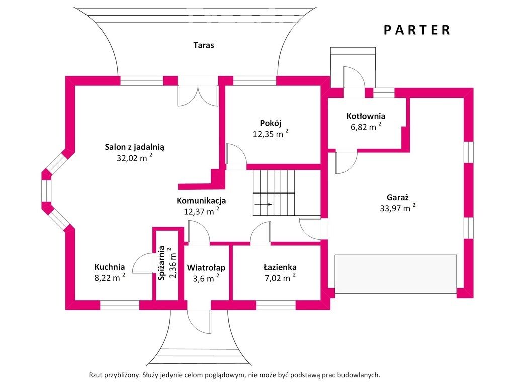 komunikacja 14,84 m² oraz wiatrołap 3,6 m²,